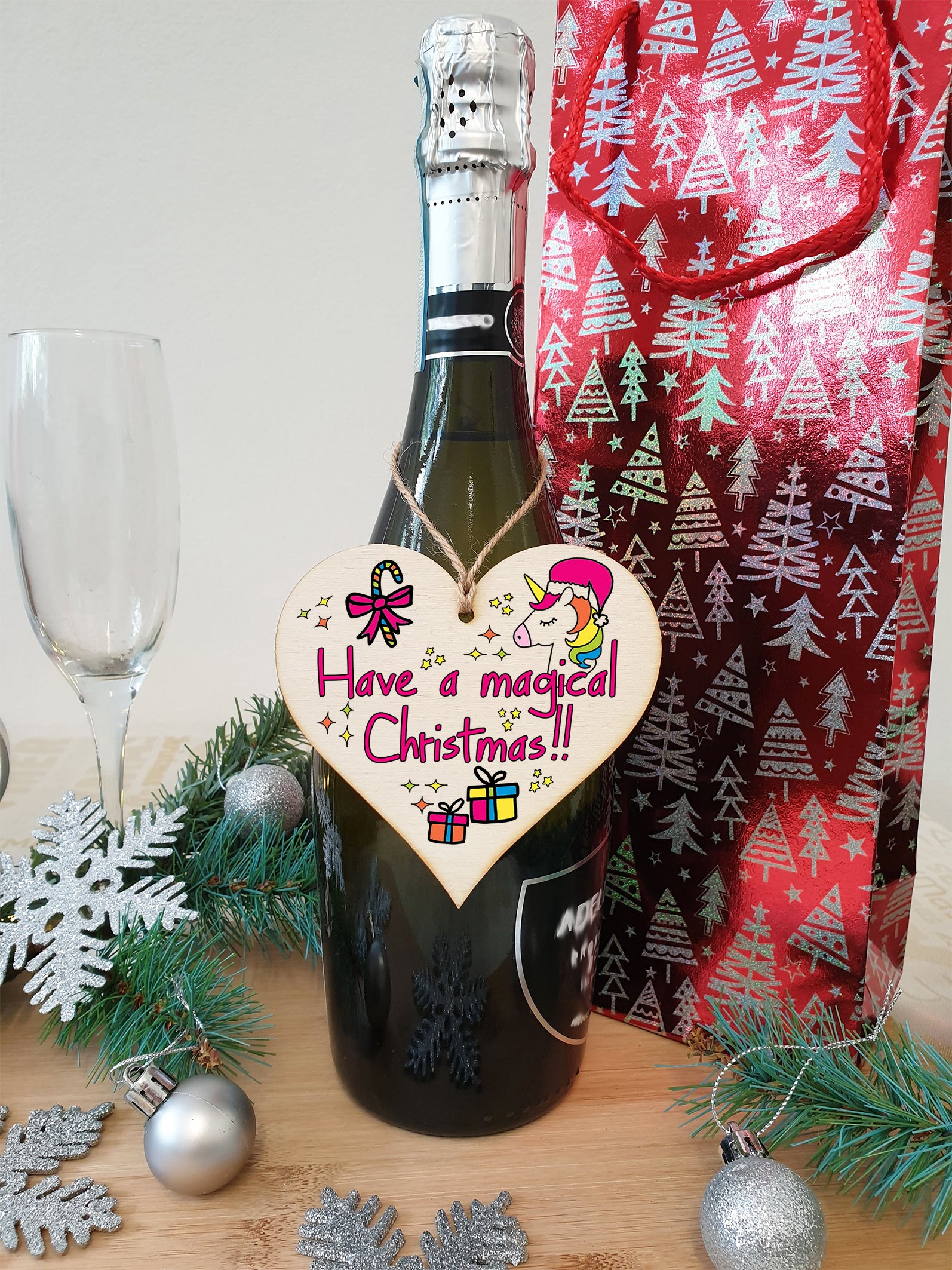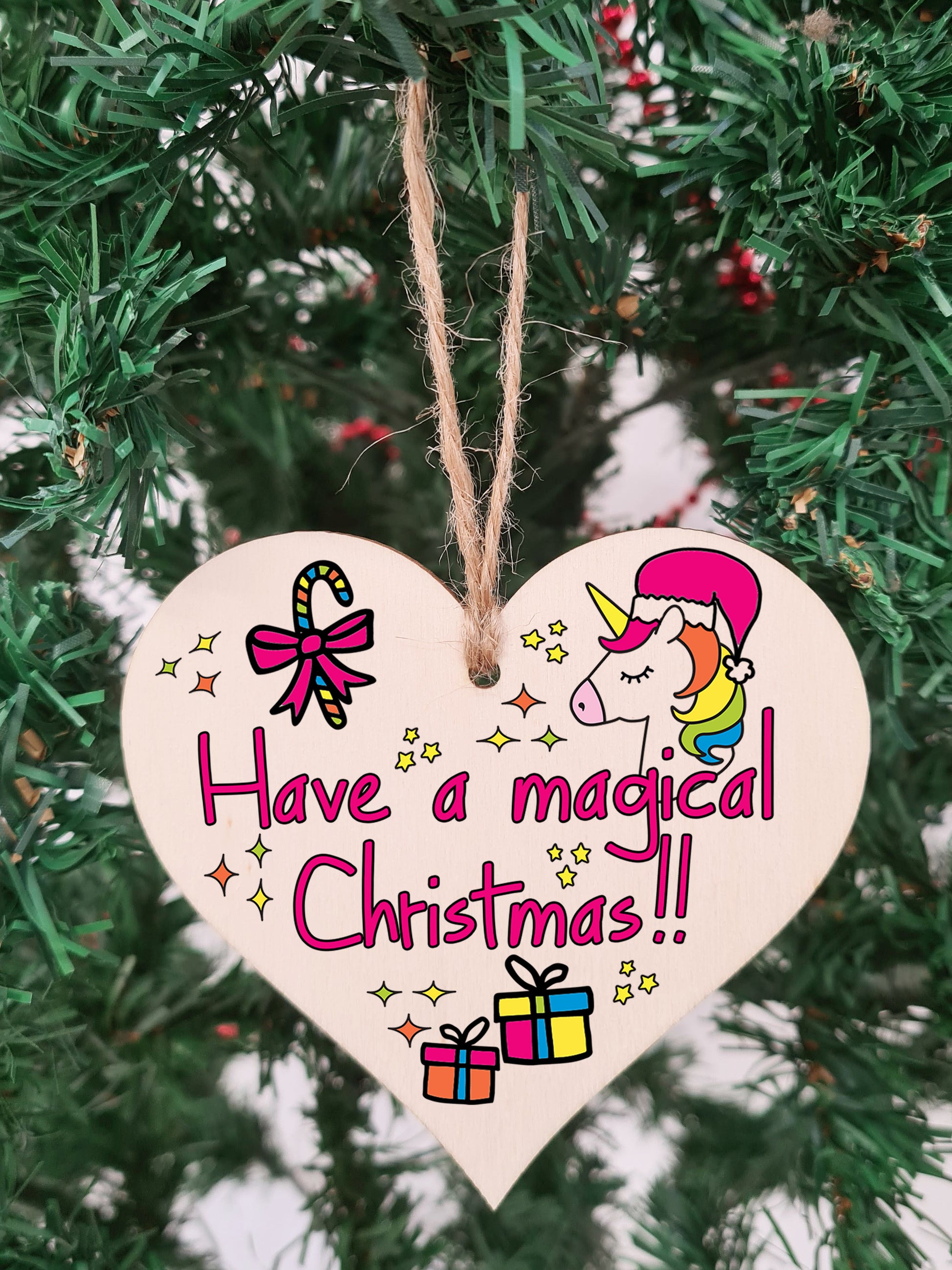 Handmade Christmas Hanging Wooden Heart Plaque Decoration Gift to wish someone special a magical merry xmas novelty unicorn fun festive bauble