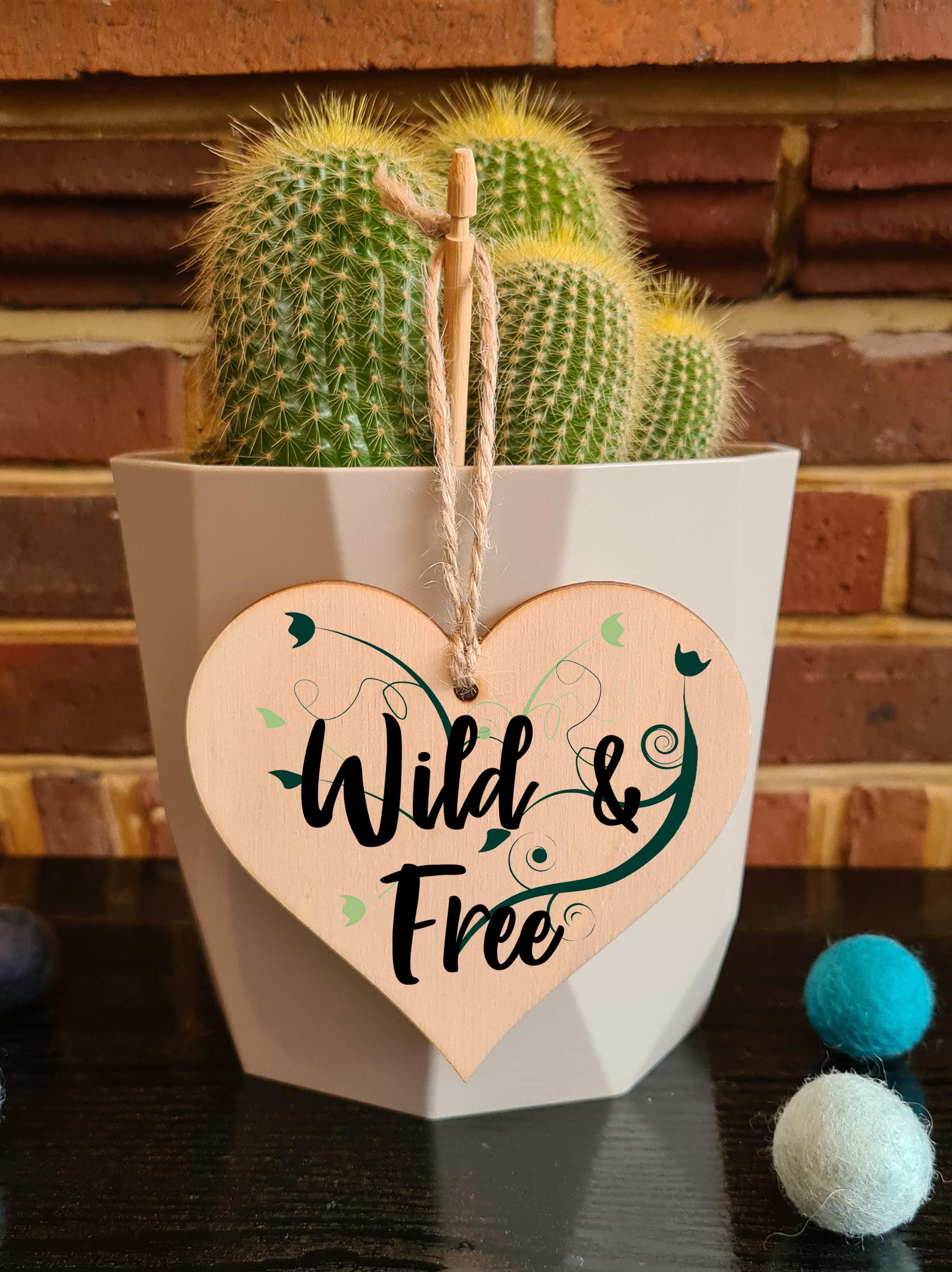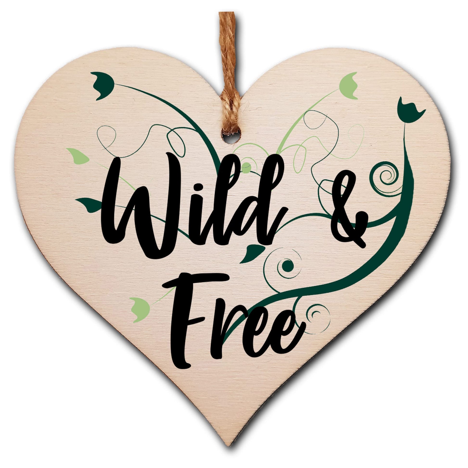 Beautiful handmade wooden heart shaped plaque. Shabby chic style hanging sign, with a unique printed design. Ideal gift for someone special. Made from high quality sustainable 3mm Plywood (Programme for the Endorsement of Forest Certification). Can be used as a hanging decoration, or even as a gift tag. Tag Reads Wild & Free