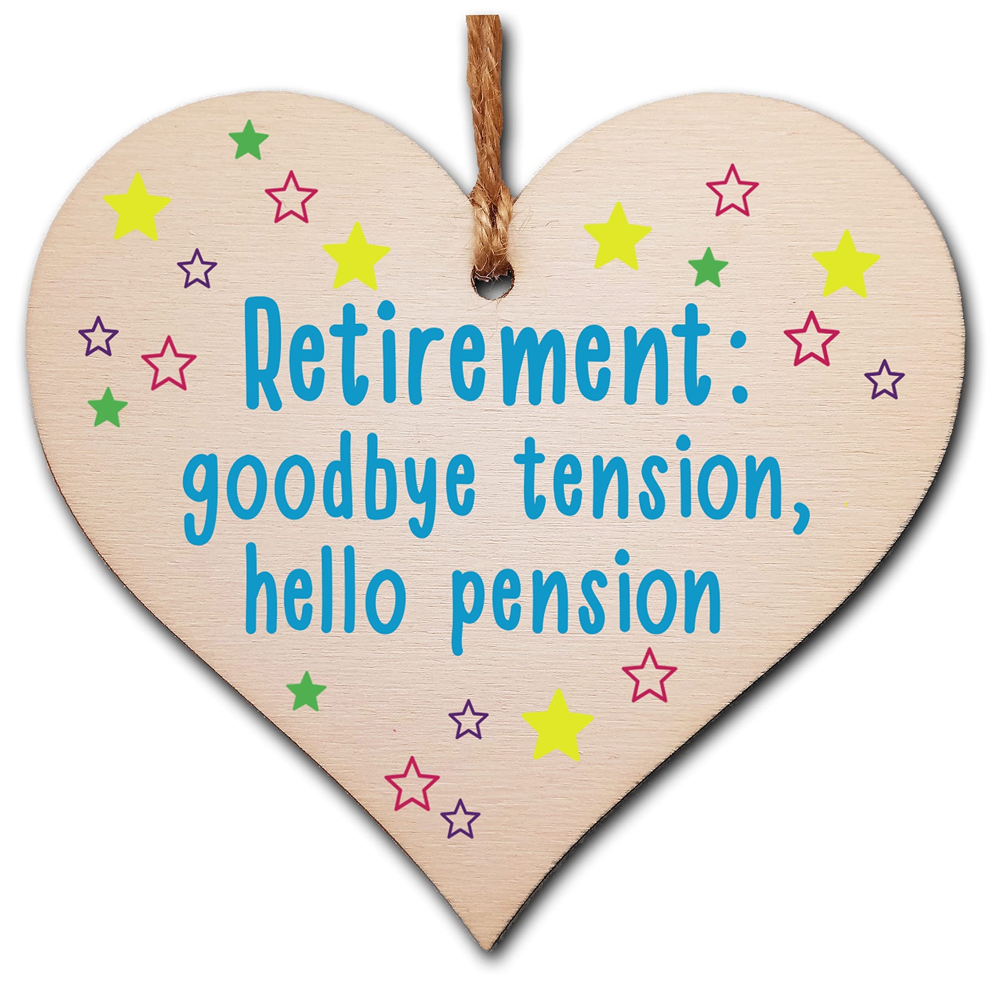 Handmade Wooden Hanging Heart Plaque Gift Goodbye Teansion Hello Pension Retirement Leaving Present Colleague Card Alternative