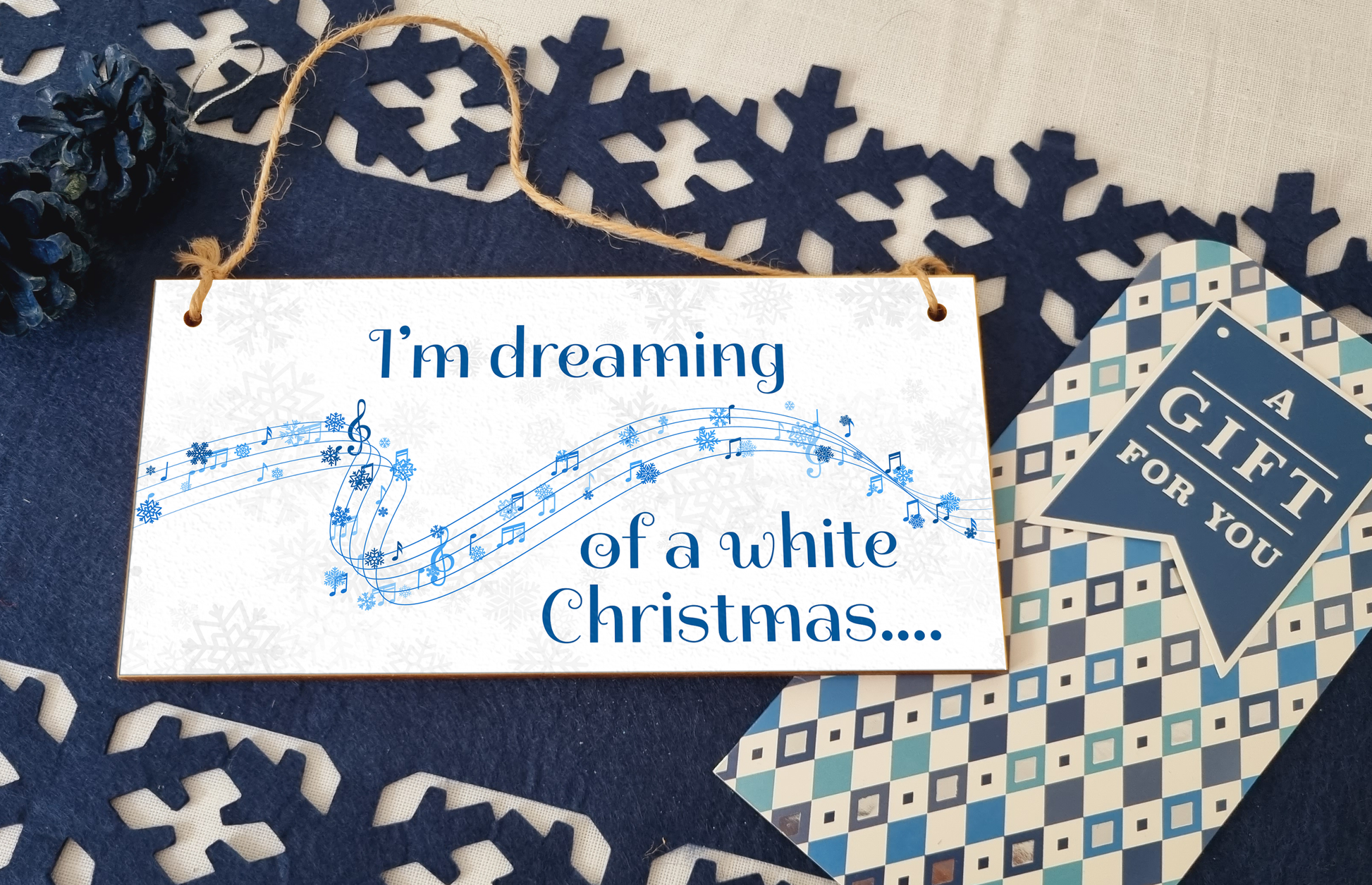 I'm Dreaming of a White Christmas Decorative Xmas Sign Carols Songs Musical Handmade Wooden Hanging Wall Plaque Gift