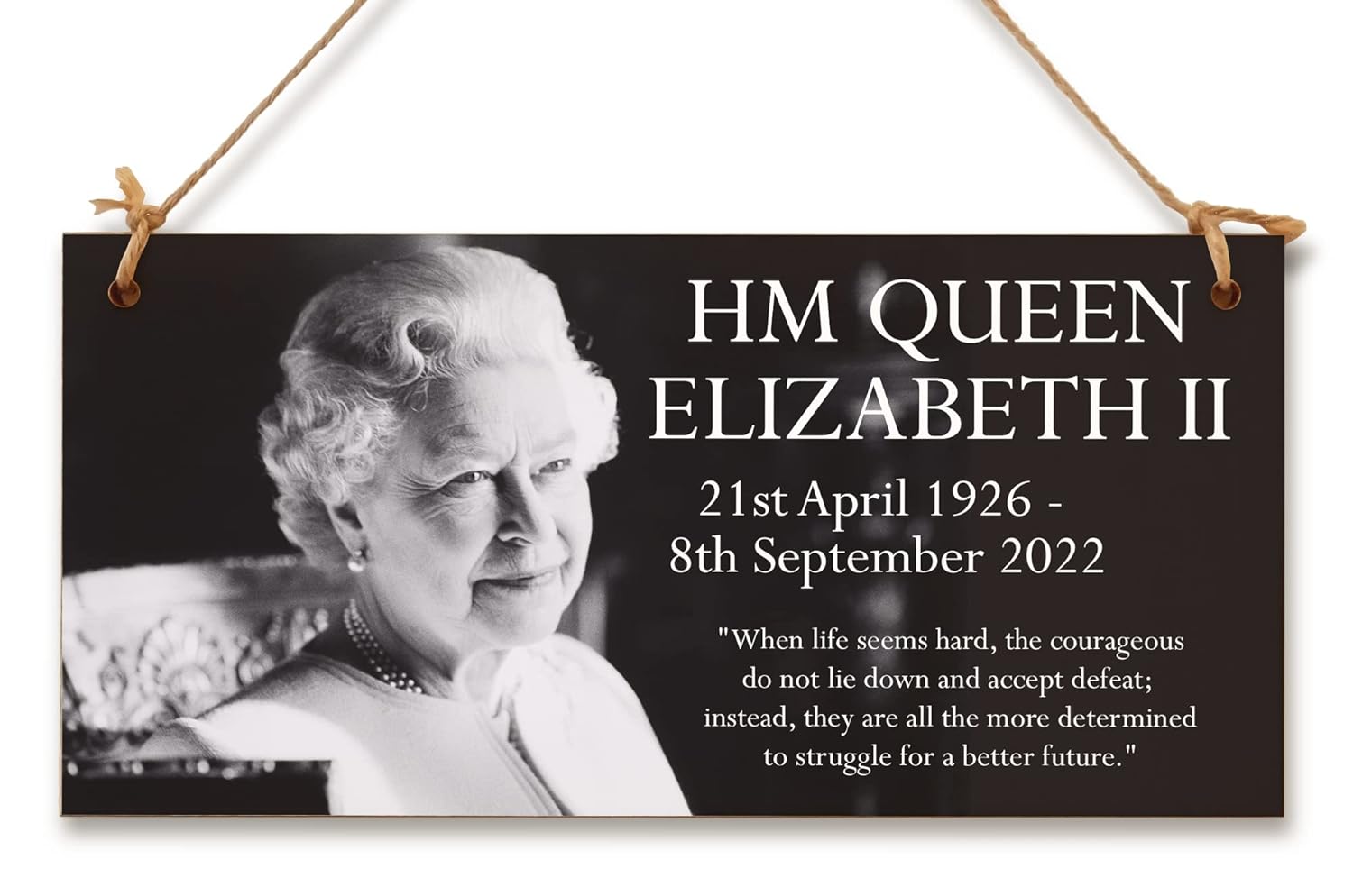 Queen Elizabeth II 1926-2022 Memorial Keepsake in Remembrance Her Majesty RIP Life Hard Quote Hanging Wooden Decoration