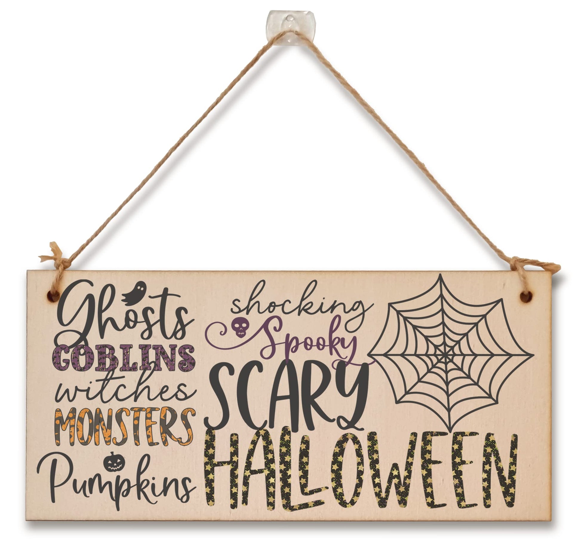 Scary Halloween Ghosts Monsters Spooky Fun Decorative Sign Handmade Wooden Hanging Wall Plaque Gift Hallway Home Décor