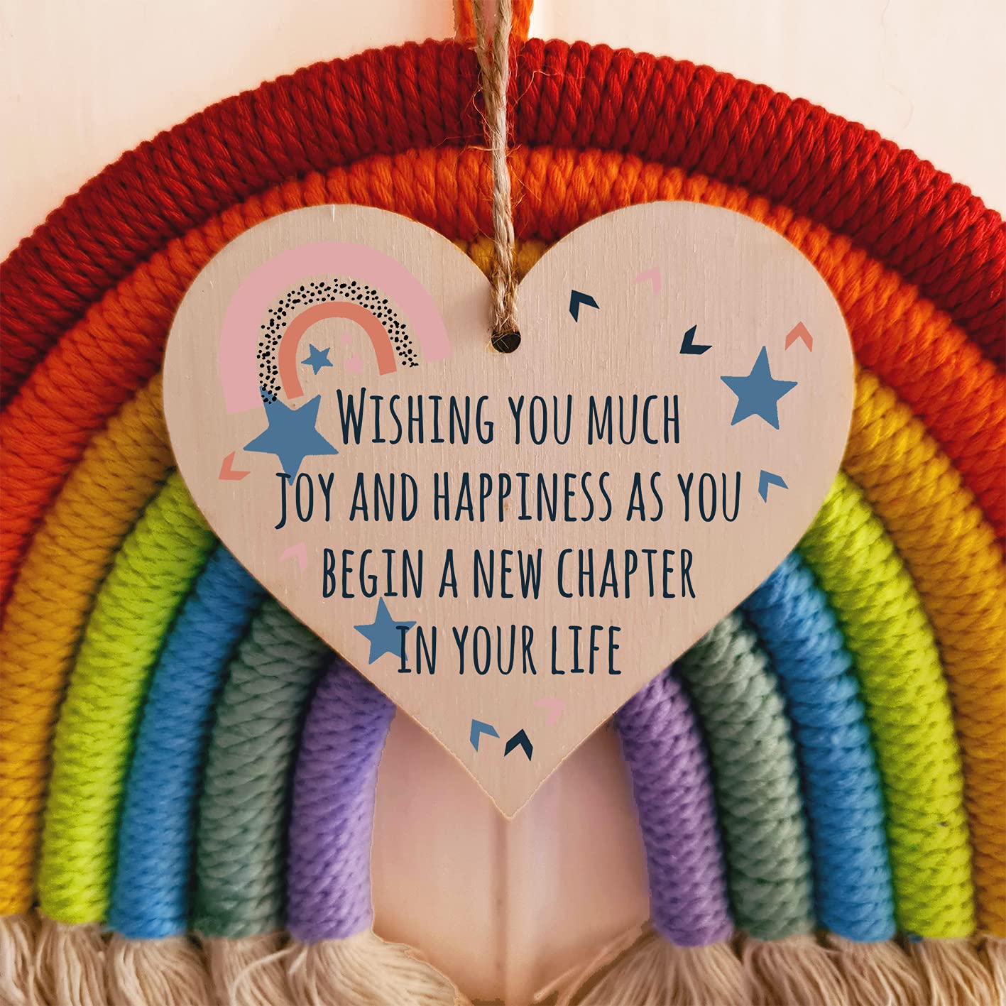 The Plum Penguin Handmade Wooden Hanging Heart Plaque Gift Joy and Happiness New Chapter Leaving Retirement Present Colleague Friend Card Alternative