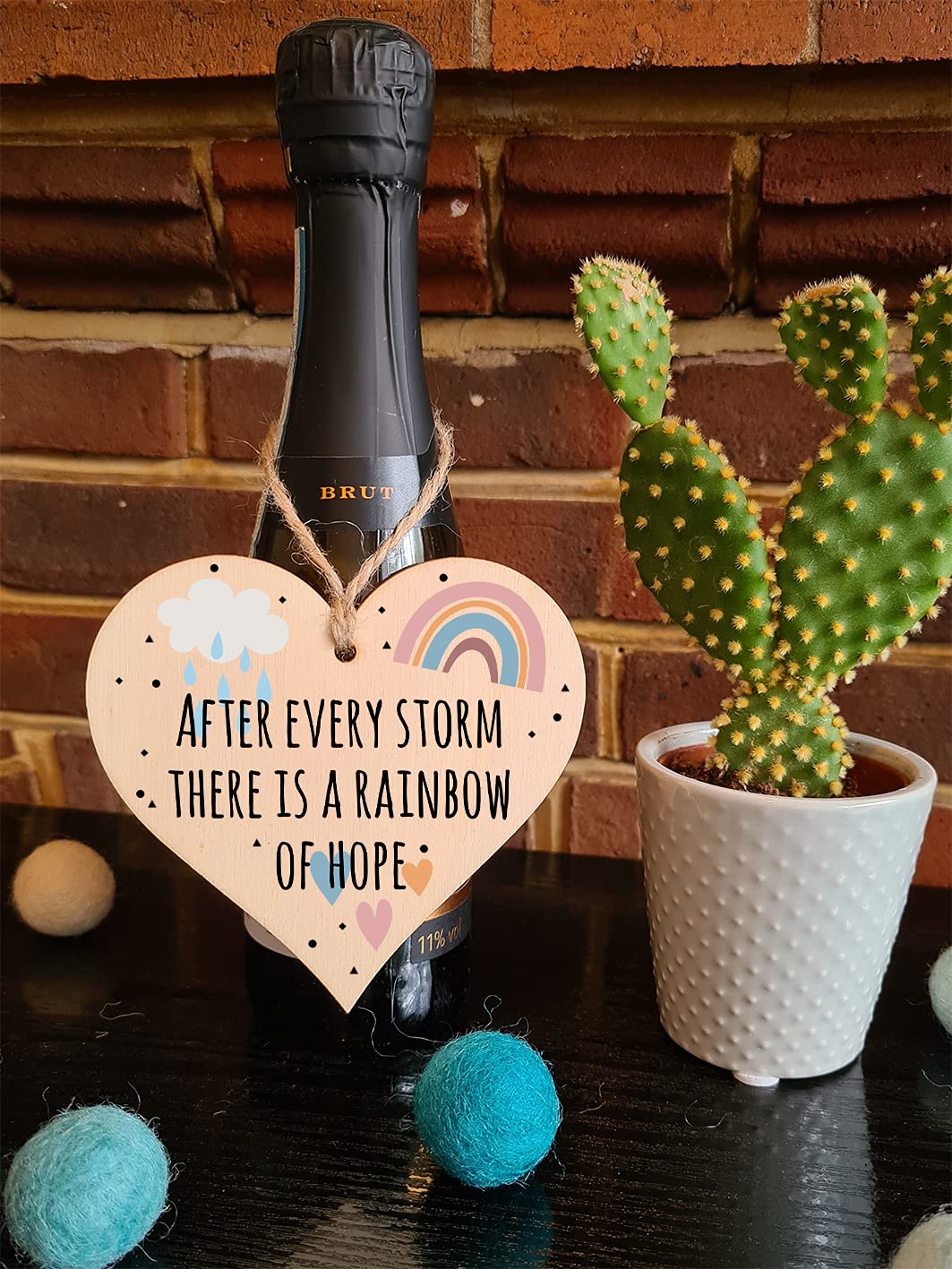 The Plum Penguin Handmade Wooden Hanging Heart Plaque Gift Storm Rainbow of Hope Inspirational Wall Hanger Card Alternative Friendship Family