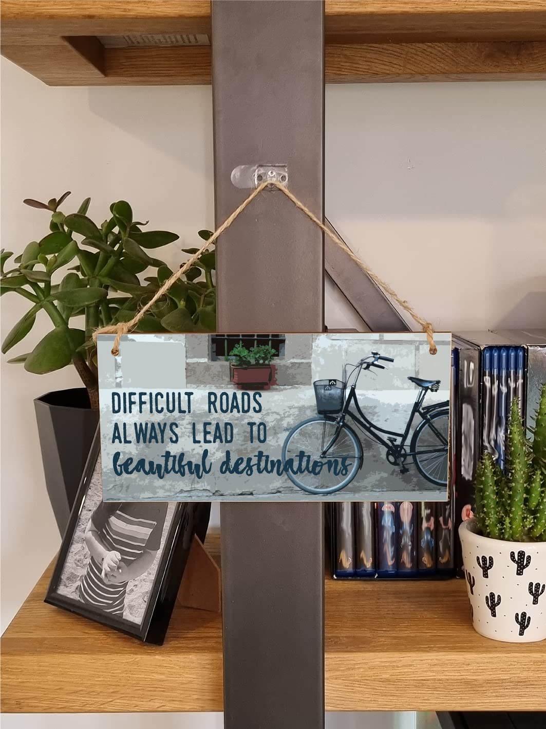 The Plum Penguin Handmade Wooden Hanging Wall Plaque Difficult Roads Lead to Beautiful Destinations Adventure Inspirational Sign