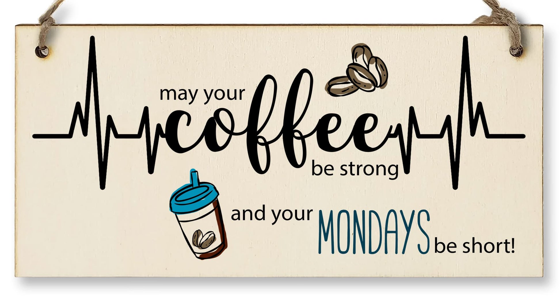 The Plum Penguin Handmade Wooden Hanging Wall Plaque May Your Coffee Be Strong Monday Short Funny Kitchen Diner Café Sign