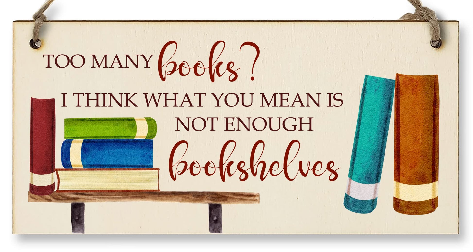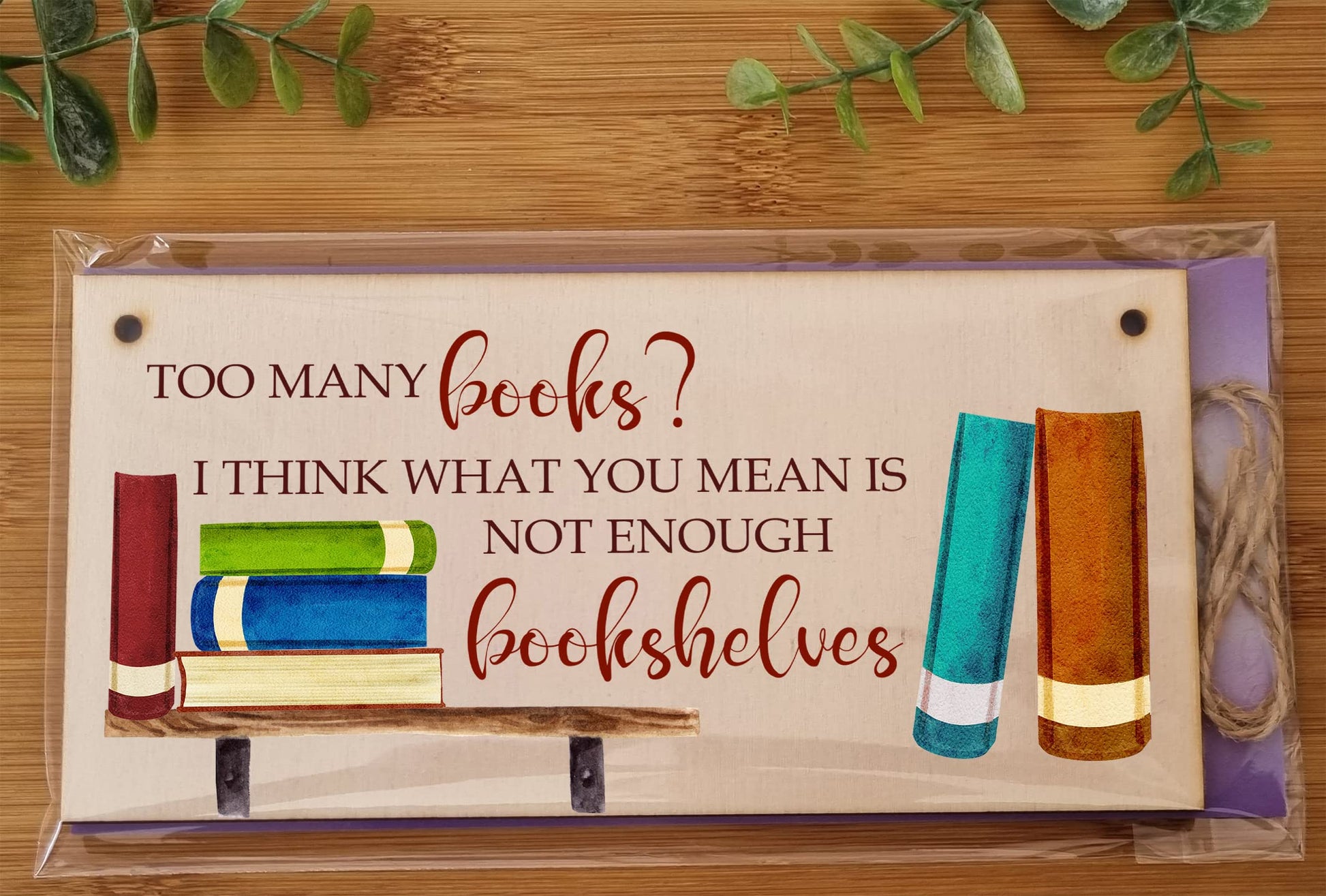 The Plum Penguin Handmade Wooden Hanging Wall Plaque Too Many Books Not Enough Bookshelves Funny Sign Gift for Book Lovers