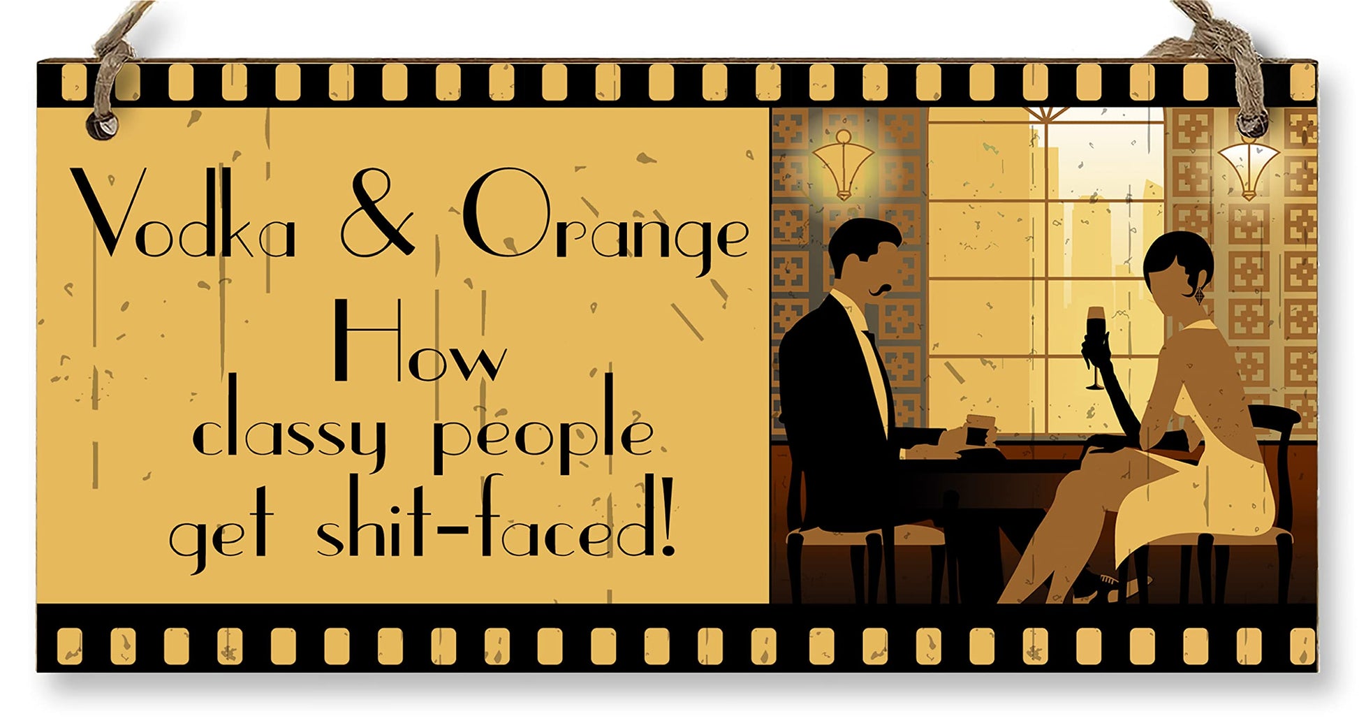 The Plum Penguin Handmade Wooden Hanging Wall Plaque Vodka and How Classy People Get Drunk Pun Novelty Sign for Home Bar Kitchen