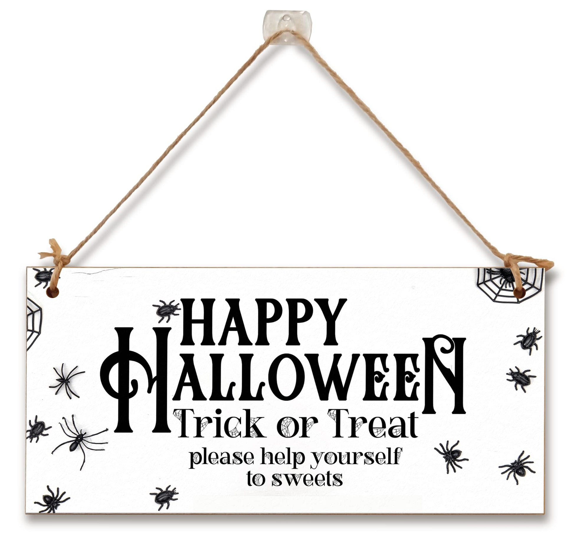 Treat or Treat Help Yourself to Sweets Happy Halloween Sign Handmade Wooden Hanging Wall Plaque Gift Hallway Home Décor